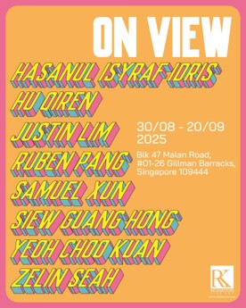 A group exhibition spotlighting the dynamic and diverse contemporary practices of eight artists from Singapore and Malaysia. Features works by Hasanul Isyraf Idris, Hu Qiren, Justin Lim, Ruben Pang, Samuel Xun, Siew Guang Hong, Yeoh Choo Kuan, and Zelin Seah.